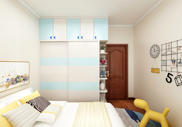 小朋友的房間比較明亮,童趣十足,水天藍和公主粉的設計再搭配明亮黃,瞬間輕快明亮,功課區和休閑區的設計,書桌功課做完立馬可以在休閑區玩耍,一房多用,小朋友們表示很喜歡自己的房間。
