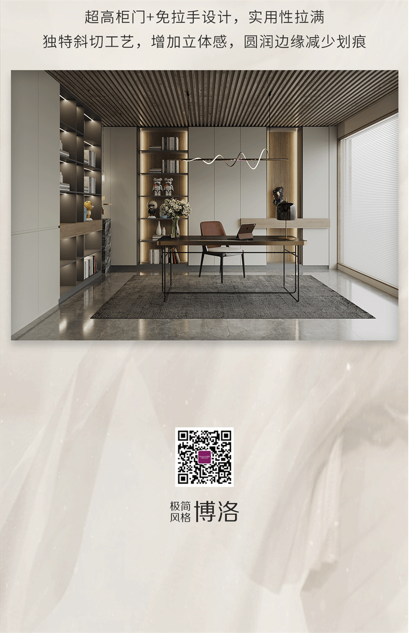 融合意式極簡的設計手法,黑白、金屬與木制在此交融,精致的弧形線條簡約而大氣,搭配大地色系營造出安靜優雅的氛圍,低飽和度啞光色彩的搭配,呈現自然溫馨的空間。