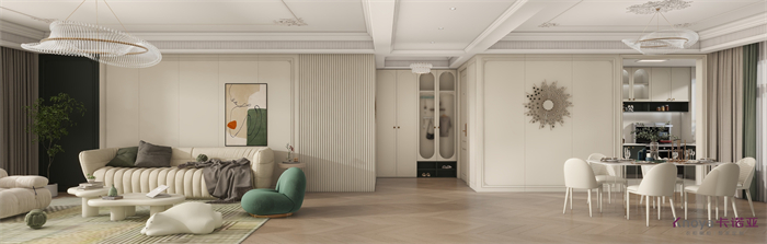 輕法式的氛圍感,藏不住的浪漫和溫馨。生活的浪漫,從家開始。螺青和奶貝顏色的強烈碰撞,盡顯靈動,浪漫而溫馨。對比色的反差并沒有很突兀的感覺,反而多了一點復古優雅的氣息。在這個家里的每處角落都成為風景,盡享平和時光,細品生活的美好。仿佛置身夢境之中。當兼具著溫馨浪漫與藝術基因的法式風格邂逅家居空間,帶來令人羨慕的精致品味--優雅,溫馨,時尚,高端,生活被演繹的像詩一樣優美。
