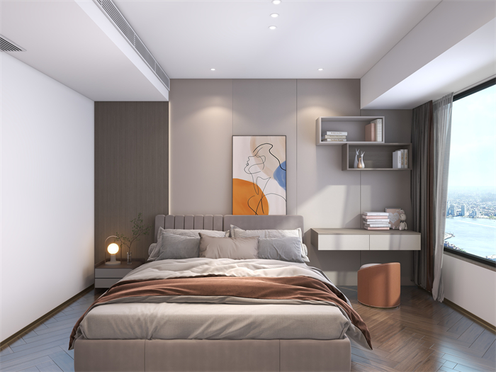 作品簡介:設計方案是個現代極簡的大平層,門板主材以水性漆為主,客餐廳是個大橫廳。光線很好,柜門和護墻采用了深色系。使空間大氣而不失沉穩。