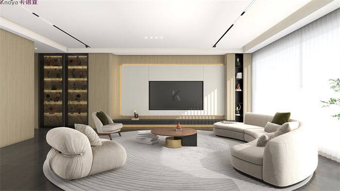 隨著人們對品質家居需求的升級,卡諾亞順勢推出“柜墻門一體”整家定制解決方案,為消費者提供櫥柜、衣柜、護墻、木門等品類。弧形護墻板因其流暢的曲線藝術之美,更優的空間利用率,以及新穎大氣的風格,成為當下“柜墻門一體”浪潮中的熱門。