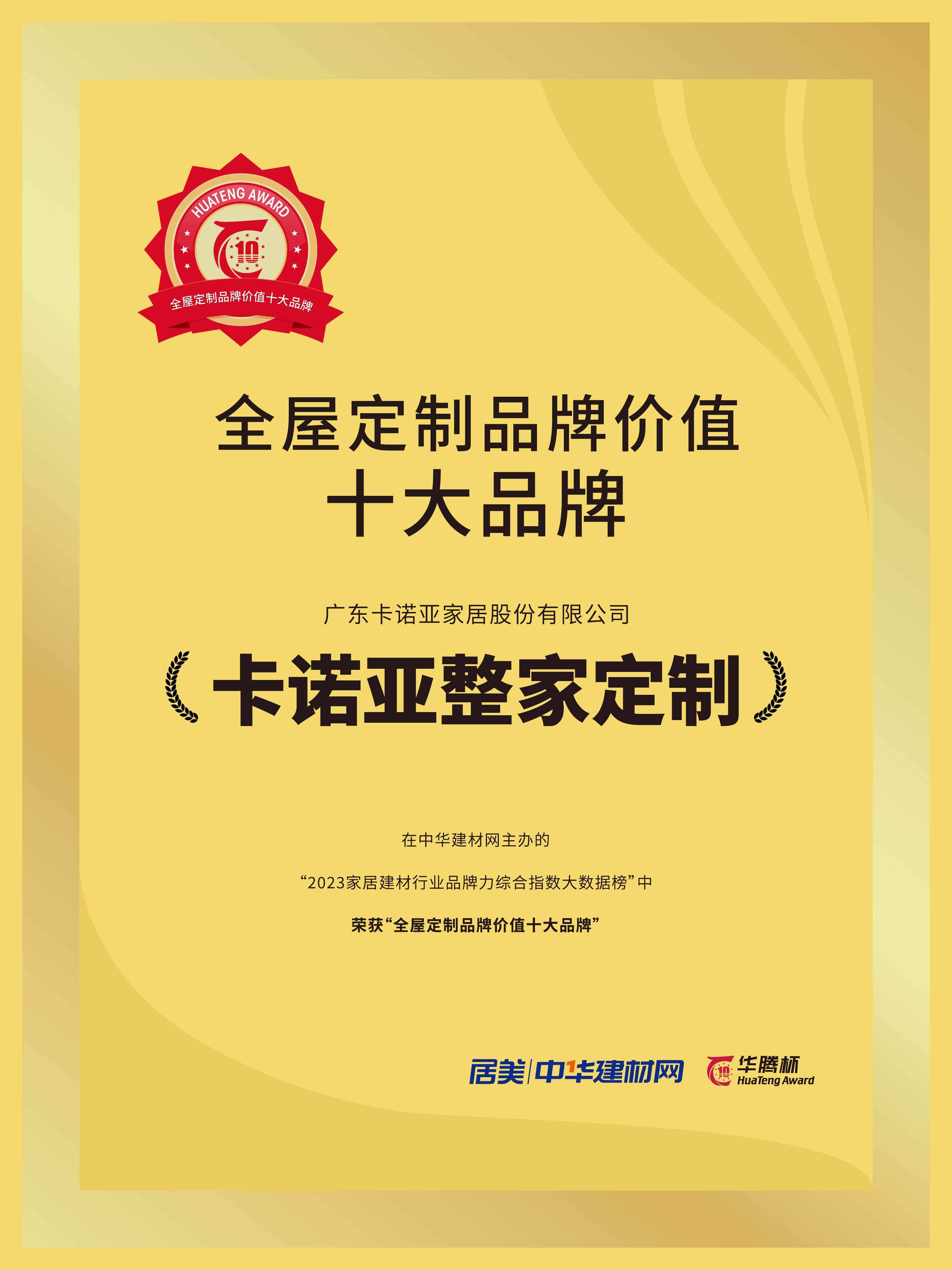 近日,在中華建材網(wǎng)主辦的“2023家居建材行業(yè)品牌力綜合指數(shù)大數(shù)據(jù)榜”中,經(jīng)過激烈角逐,卡諾亞憑借專注定制家居22年的品牌實力、業(yè)界的廣泛認(rèn)可及良好的市場口碑,眾望所歸榮膺“全屋定制品牌價值十大品牌”的殊榮。