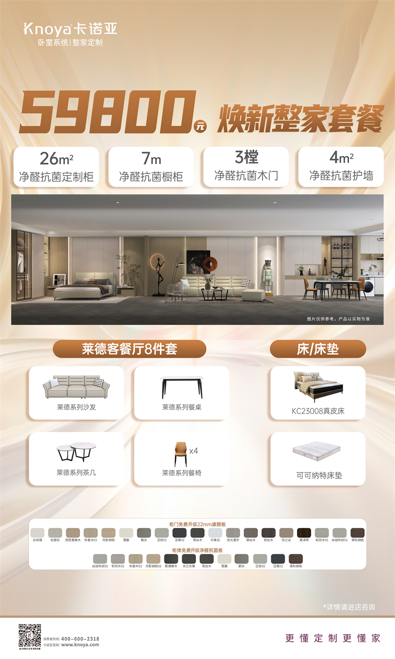 59800元全屋升級(jí)凈醛抗菌家套餐,柜墻門櫥全配齊