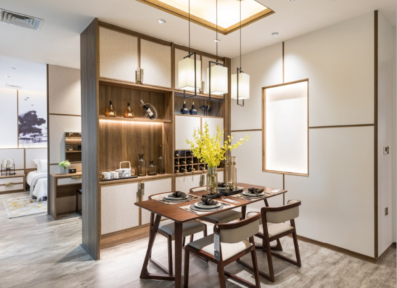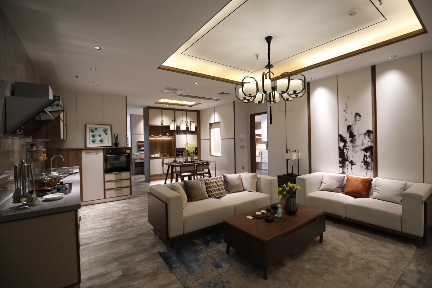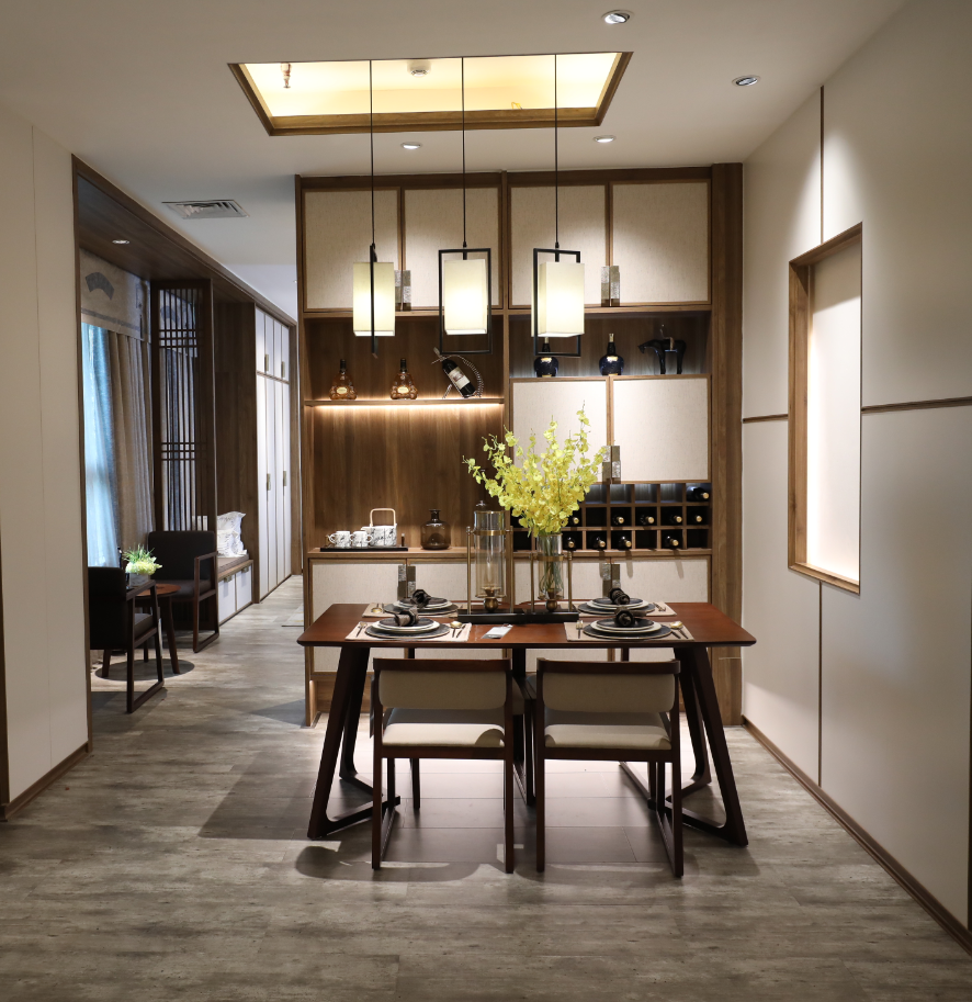 客餐廳一體化設計,敞開式的空間,從客廳到餐廳再到廚房,沒有距離感。統一的材質和色調,讓家更加整整齊齊,結構上又主次有序,彰顯出新中式傳統與現代的完美融合,點綴新生活的美好格調。