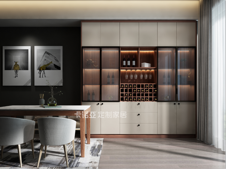 中國酒文化源遠流長,酒更是生活氣氛的調味劑,中秋團圓時刻,與老父談心,當然少不了一杯好酒。有酒必有柜,在餐邊柜上設計一組酒柜,就著一桌美食,佐酒暢談,把酒言歡,自是怡然自得、雅興倍增。感受卡諾亞輕奢格調餐廳的優雅溫馨,盡享美酒醇香。