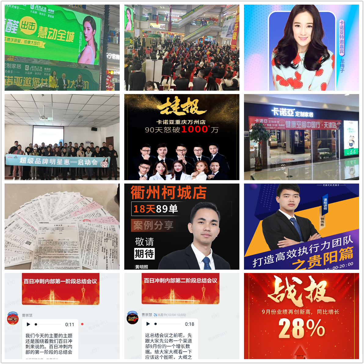 之后,精心策劃了多場大型全國聯動大促,卡諾亞渠道部特派精英爆破團隊就活動的政策解析、引流儲備、活動管控和獎勵機制等層面,對經銷商進行精準落地幫扶,督促并推進各大區域門店將活動的各項政策認真貫徹落實。