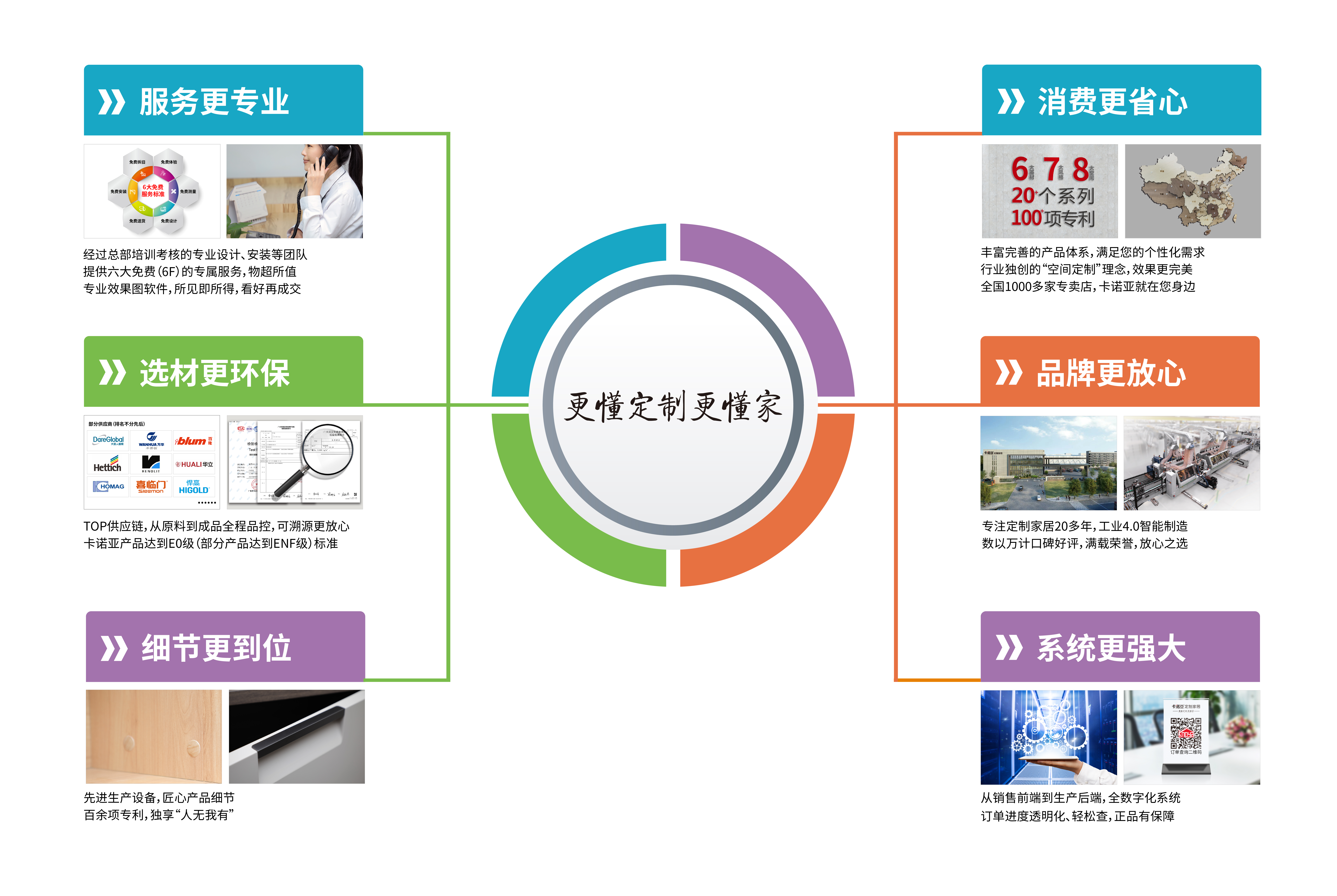 卡諾亞始終堅持“服務創造價值”的核心價值觀,以“提供家居整體解決方案,創新引領人類健康生活”為企業使命,不斷完善6F免費專屬服務體系,以滿足人們日益增長的美好家居生活需要,用無微不至的服務賦能顧客更理想的生活。