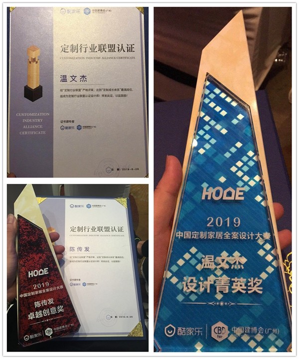 近日,由酷家樂聯合中國建博會(廣州)舉辦的2019中國定制家居全案設計大賽圓滿結束.卡諾亞定制家居設計師溫文杰、陳傳發、綦福強分別奪得設計菁英獎、卓越創意獎和最具影響力設計獎,同時還獲得由主辦方組委會頒發的“定制行業聯盟認證”。這標志著卡諾亞設計師經過“定制行業聯盟”嚴格評審,達到“定制成長體系”最高段位,眾望所歸成為定制行業聯盟認證設計師,這也印證了卡諾亞的家居設計力量在業界處于領先地位。